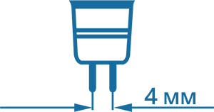 GU4 – цоколь со штырьковым креплением в патрон светильника. Расстояние между штырьками – 4 мм. Используется в маленьких низковольтных лампах (12 или 24 вольта) для точечной акцентной подсветки элементов интерьера или декора.