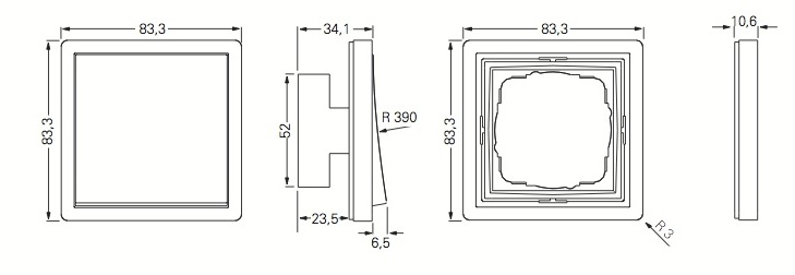 Термопласт (поликарбонат), ударопрочный, неломающийся, не содержит галогенов, устойчив к УФ-излучению, легко очищаемая поверхность