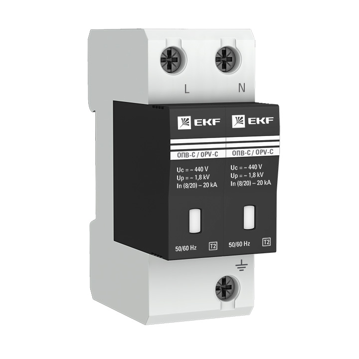 Ограничитель перенапряжения (УЗИП / OVR) ОПС1-C KARAT, 2 полюса, Класс 2, 20 кА, 40 кА