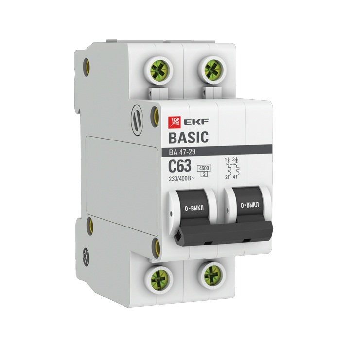 Автоматический выключатель ВА 47-29 BASIC, 2 полюса, 63А, C, 4,5 кА