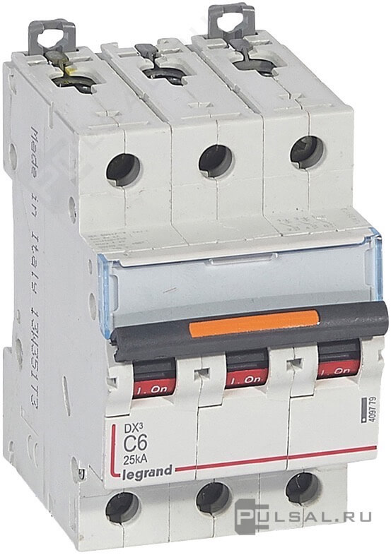 Автоматический выключатель DX³, 3 полюса, 6А, C, 25 кА