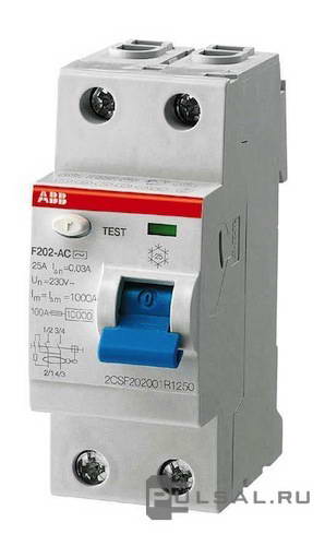 Выключатель дифференциального тока 2-модульный F202 A-25/0, 03 F200, 2 полюса, 25А, тип - A, 30 мА