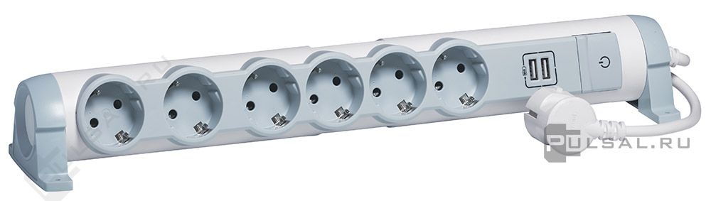 • Удлинитель "Куб" - 2 розетки, 3хUSB-А (с ночником), цвет -  белый