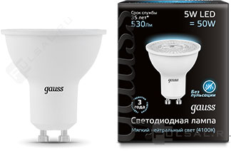 Elementary, цоколь - GU10, мощность - 5.5Вт, световой поток - 450Лм, цветовая температура - 4100К, не диммируется, 13626, Gauss