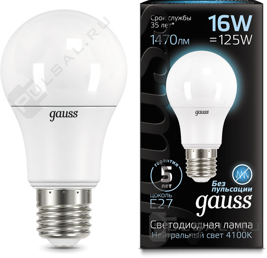 Лампа светодиодная Black, цоколь - E27, мощность - 16Вт, световой поток - 1470Лм, цветовая температура - 4100К, не диммируется, 102502216, Gauss