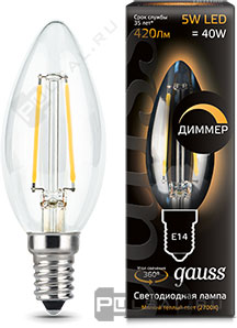 Лампа прозрачная филаментная Black, цоколь - E14, мощность - 5Вт, световой поток - 420Лм, цветовая температура - 2700К, диммируется, 103801105-D, Gauss