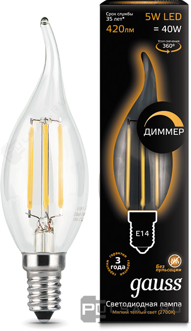 Black, цоколь - E14, мощность - 5Вт, световой поток - 420Лм, цветовая температура - 2700К, не диммируемая, 103801105P, Gauss