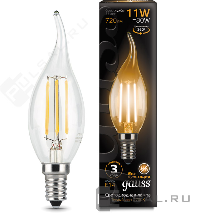 Лампа филаментная Black, цоколь - E14, мощность - 11Вт, световой поток - 720Лм, цветовая температура - 2700К, не диммируется, 104801111, Gauss