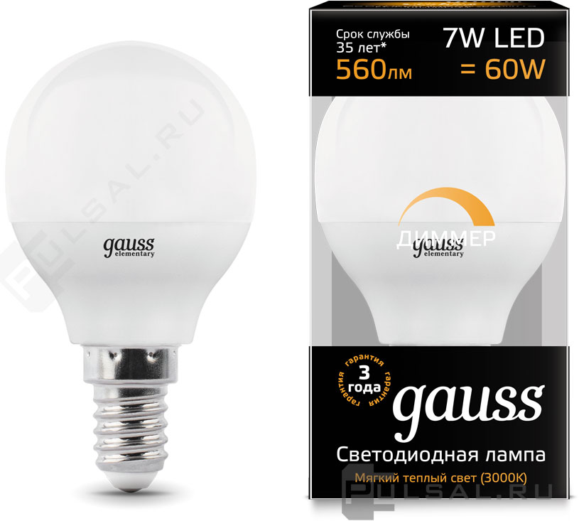 Лампа светодиодная Black, цоколь - E14, мощность - 7Вт, световой поток - 560Лм, цветовая температура - 3000К, диммируется, 105101107-D, Gauss
