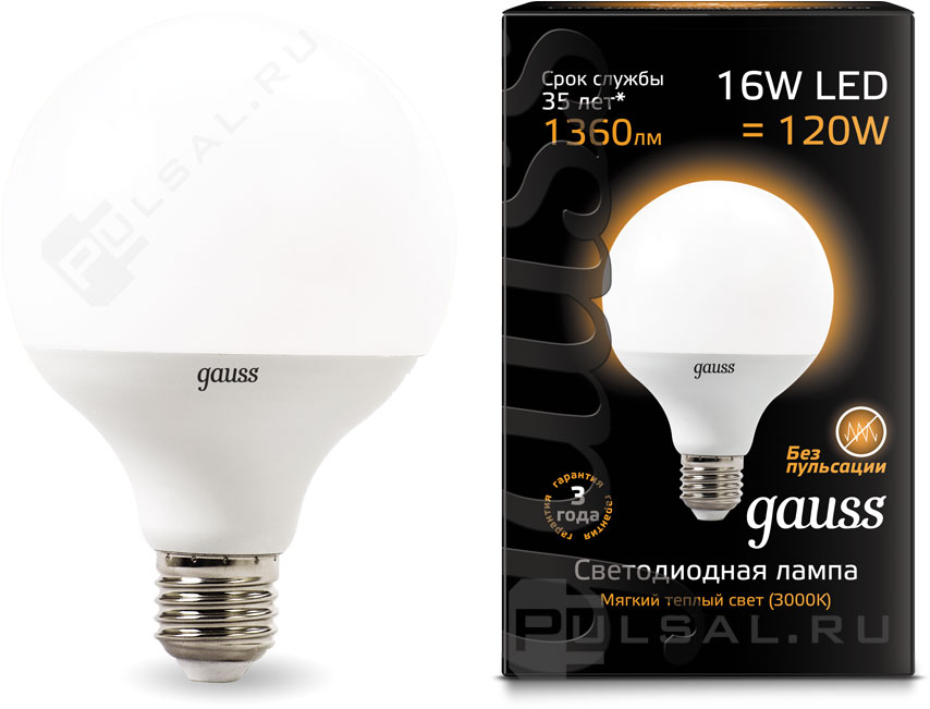Black, цоколь - E27, мощность - 16Вт, световой поток - 1380Лм, цветовая температура - 3000К, не диммируется, 102502116, Gauss