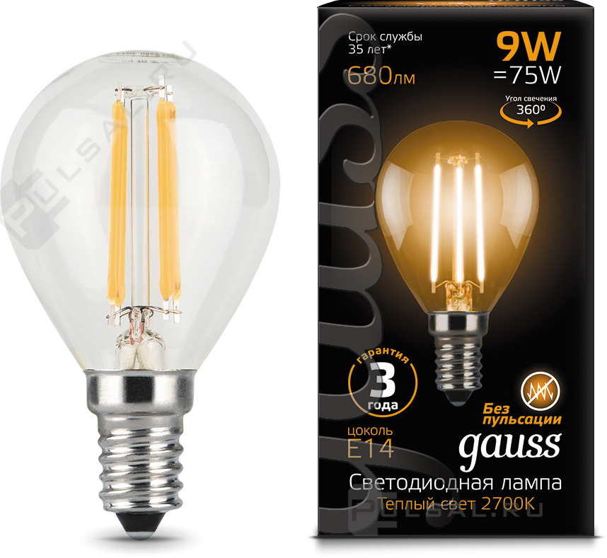 Black, цоколь - E14, мощность - 5Вт, световой поток - 420Лм, цветовая температура - 2700К, не диммируемая, 103801105P, Gauss