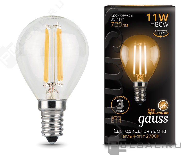 Лампа филаментная Black, цоколь - E14, мощность - 11Вт, световой поток - 720Лм, цветовая температура - 2700К, не диммируется, 105801111, Gauss