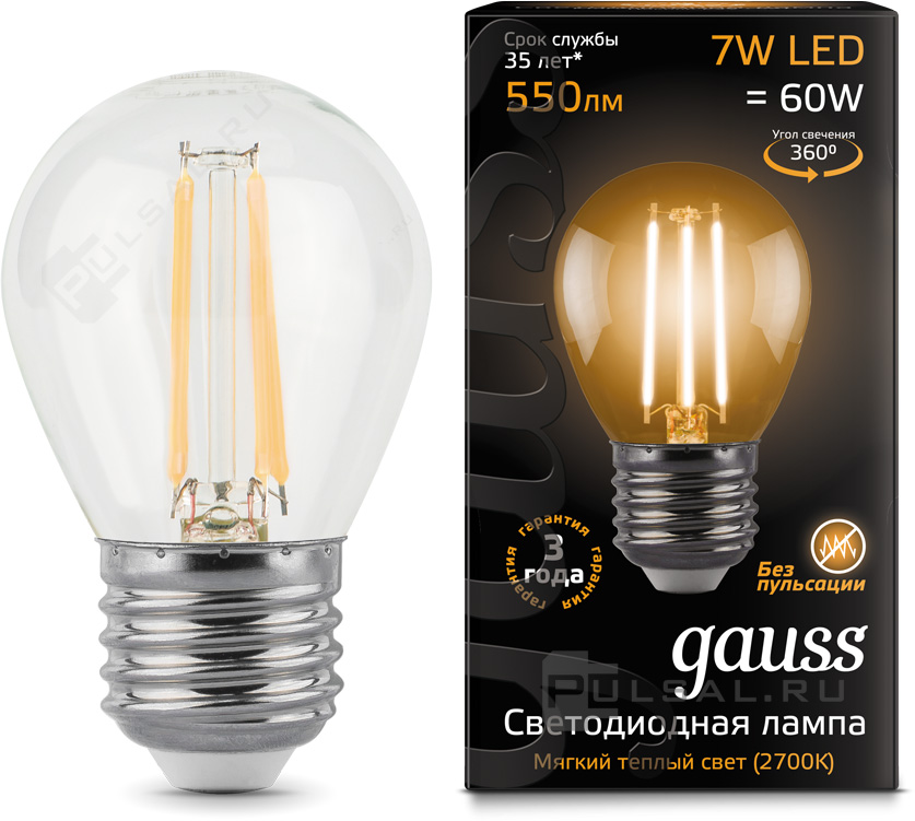 Black, цоколь - E27, мощность - 6.5Вт, световой поток - 520Лм, цветовая температура - 2700Кцветовая температура - 3000К, не диммируется, 103102107, Gauss