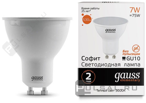 Лампа светодиодная Elementary, цоколь - GU10, мощность - 7Вт, световой поток - 530Лм, цветовая температура - 3000К, не диммируется, 13617, Gauss