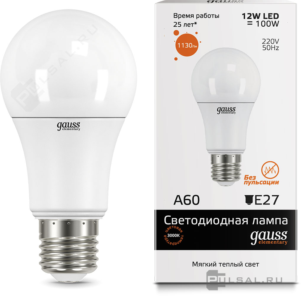 Elementary, цоколь - E27, мощность - 30Вт, световой поток - 2320Лм, цветовая температура - 3000К, не диммируется, 73219, Gauss
