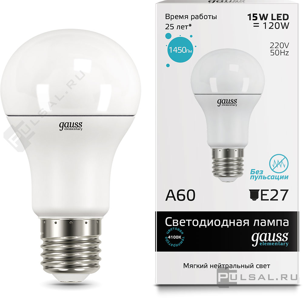 Elementary, цоколь - E27, мощность - 12Вт, световой поток - 1150Лм, цветовая температура - 4100К, не диммируется, 23222, Gauss
