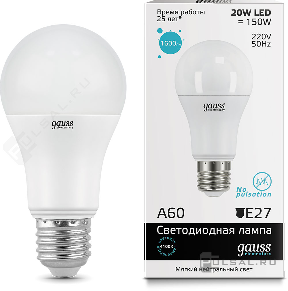 Elementary, цоколь - E27, мощность - 12Вт, световой поток - 1150Лм, цветовая температура - 4100К, не диммируется, 23222, Gauss