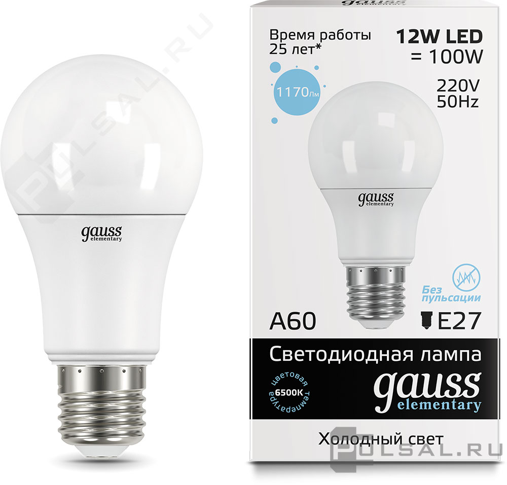 Elementary, цоколь - E27, мощность - 15Вт, световой поток - 1480Лм, цветовая температура - 6500К, не диммируется, 23235, Gauss