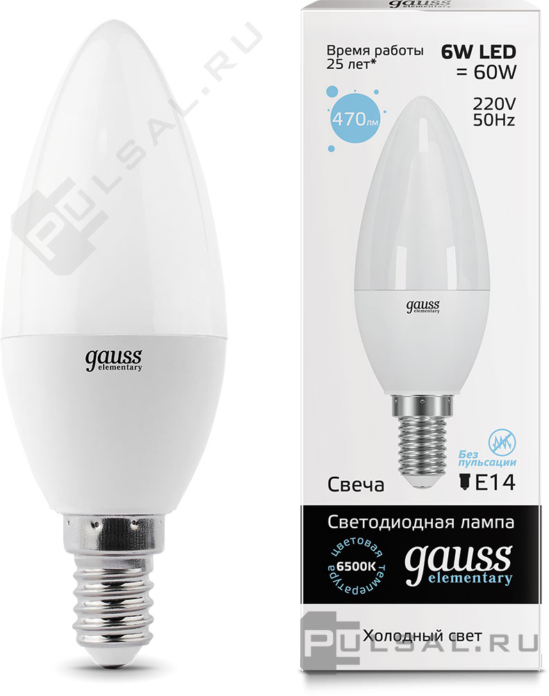 Elementary, цоколь - E14, мощность - 10Вт, световой поток - 750Лм, цветовая температура - 6500К, не диммируется, 53130, Gauss