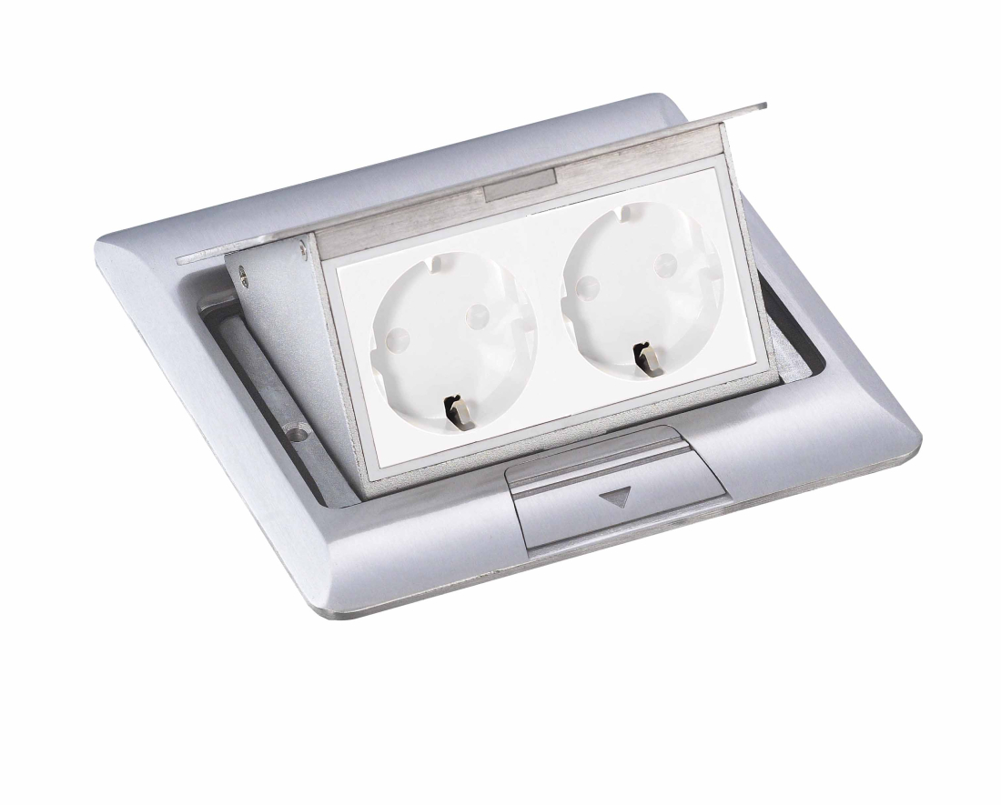 Лючок в пол с установочным набором (без розеток) Лючки DDSB, напольная, 2 поста, 4 модуля, цвет - алюминий