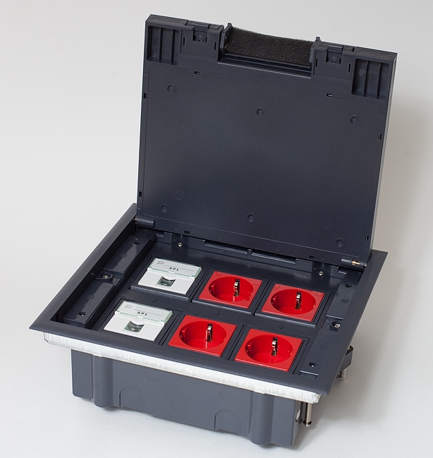 Монтажная коробка для установки лючков DFB2MR в фальш-пол Лючки DFB, напольная, 2 поста, 4 модуля