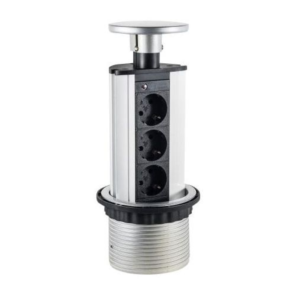 Настольный встраиваемый розеточный блок Static Лючки DDSB, для столов и мебели, 3 поста, 6 модулей, цвет - серебро