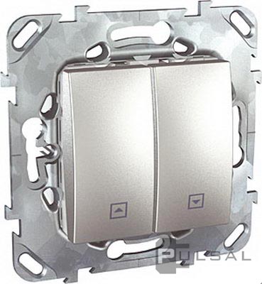 Выключатель для жалюзи нажимной Unica Quadro, Unica Top, Unica Class, без фиксации, цвет - алюминий