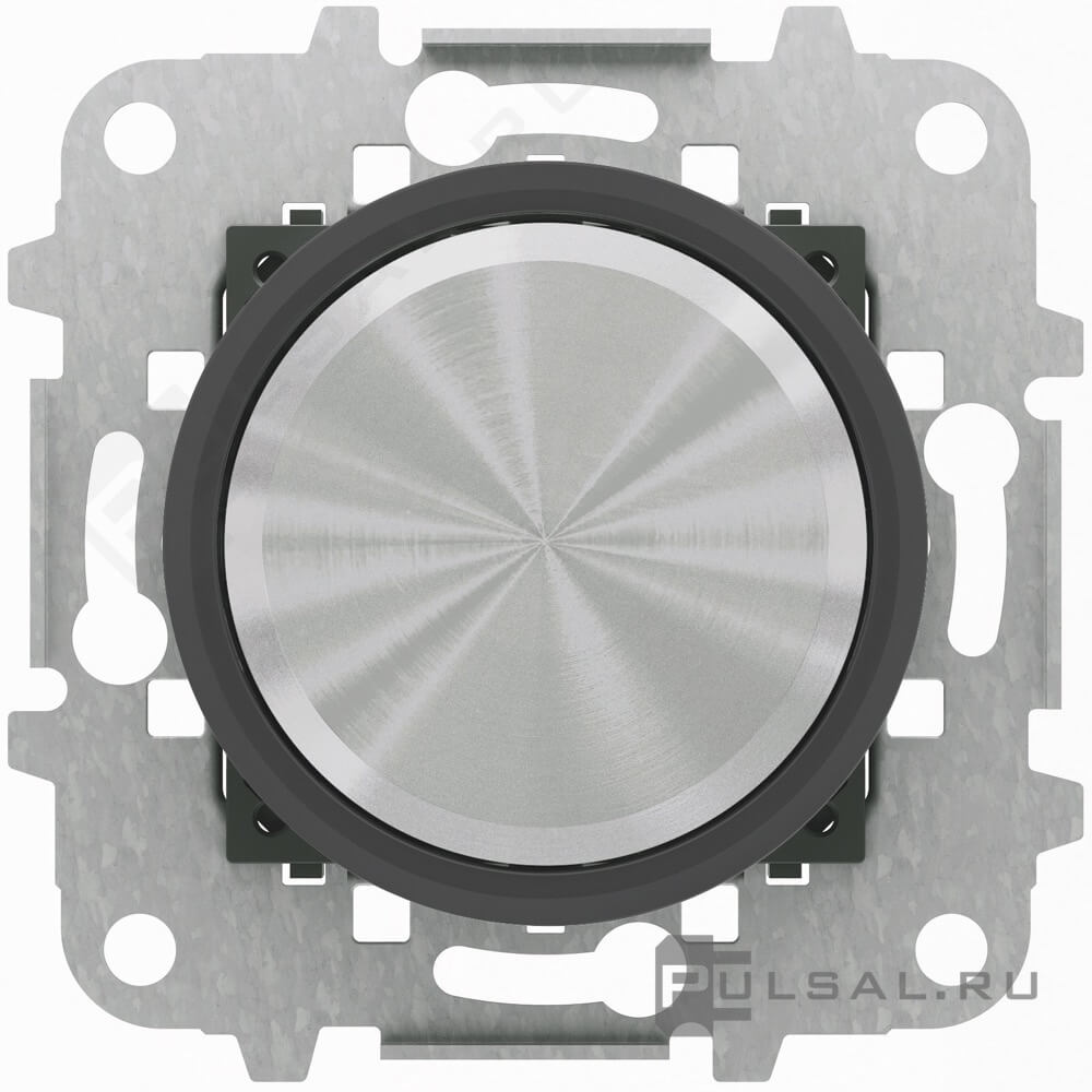 Светорегулятор (диммер) 10-250 Вт/ВА, для LED 2-100 Вт, кольцо "чёрное стекло" SKYmoon, поворотно-нажимной, лампы накаливания и галогенные 220В (R), лампы с индукционным (обмоточным) трансформ.(L), лампы с электронным (емкостным) трансформ.(C), диммируемые лампы LED 220В (LEDi тип L), цвет - нержавеющая сталь, черное стекло
