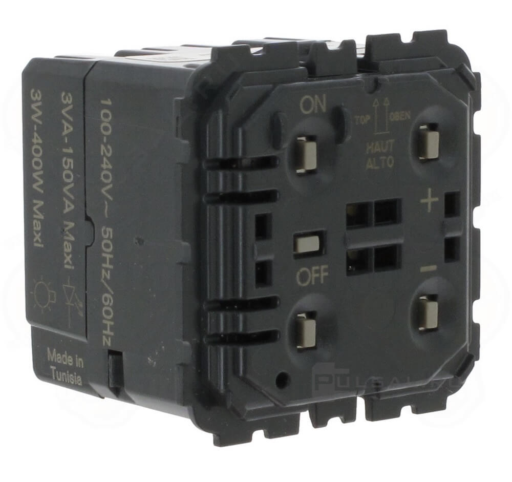 Механизм светорегулятора (диммера) 3-400 Вт/ВА, для LED 3-75 ВА Celiane, клавишный, с возможностью управления с 2-х мест, лампы накаливания и галогенные 220В (R), лампы с индукционным (обмоточным) трансформ.(L), лампы с электронным (емкостным) трансформ.(C), диммируемые лампы LED 220В (LEDi тип L), диммируемые лампы LED 220В (LEDi тип C)