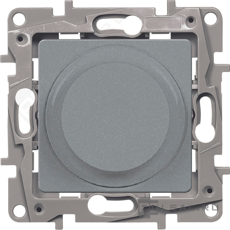 Светорегулятор (диммер) 5-300 Вт/ВА, для LED 5-75 ВА Etika, поворотно-нажимной, с возможностью управления с 2-х мест, лампы накаливания и галогенные 220В (R), лампы с индукционным (обмоточным) трансформ.(L), лампы с электронным (емкостным) трансформ.(C), диммируемые лампы LED 220В (LEDi тип L), диммируемые лампы LED 220В (LEDi тип C), цвет - алюминий