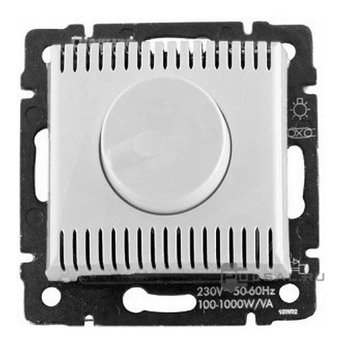 Valena, поворотно-нажимной, с возможностью управления с 2-х мест, лампы накаливания и галогенные 220В (R), лампы с индукционным (обмоточным) трансформ.(L), лампы с электронным (емкостным) трансформ.(C), диммируемые лампы LED 220В (LEDi тип L), диммируемые лампы LED 220В (LEDi тип C), цвет - белый