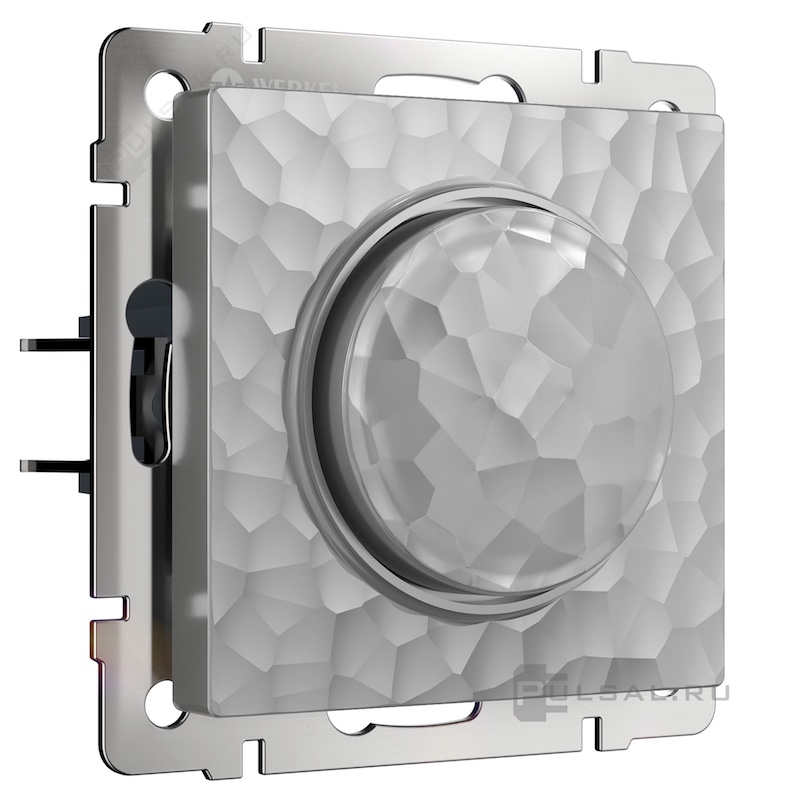 Светорегулятор (диммер) 600 Вт/ВА, для LED 200 Вт/ВА Hammer, поворотно-нажимной, лампы накаливания и галогенные 220В (R), лампы с электронным (емкостным) трансформ.(C), диммируемые лампы LED 220В (LEDi тип C), цвет - серебряный
