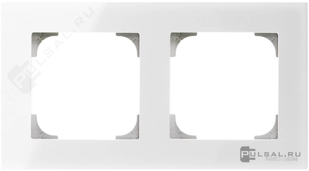 Рамка SKY, 2 поста, цвет - белое стекло, стекло