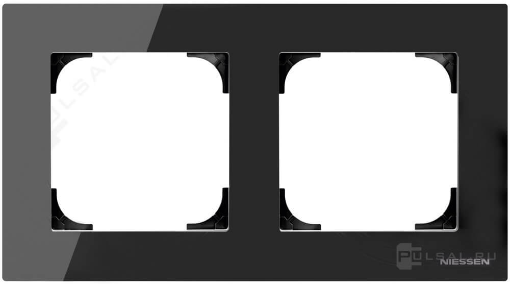 Рамка SKY, 4 поста, цвет - черное стекло, стекло