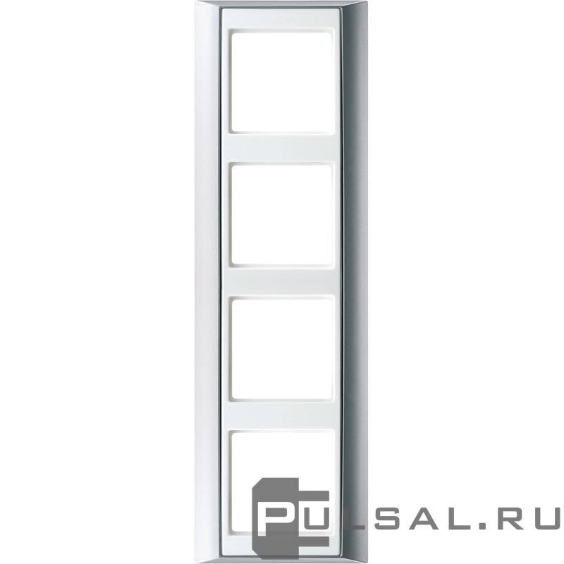 Рамка A plus, 4 поста, цвет - алюминий, белый, пластмасса