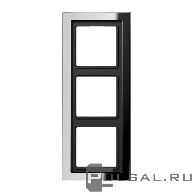 Рамка LS-design, 3 поста, цвет - хром, металл