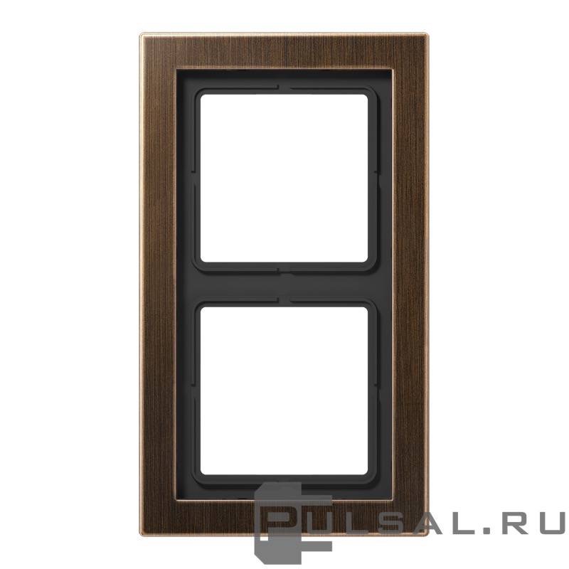 Рамка LS-design, 2 поста, цвет - латунь античная, металл