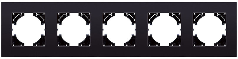 Рамка матовая MG Reflex, 5 постов, цвет - черное стекло, стекло