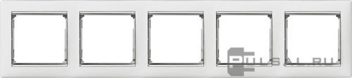 Рамка Valena, 5 постов, цвет - белый / серебряный штрих, пластмасса