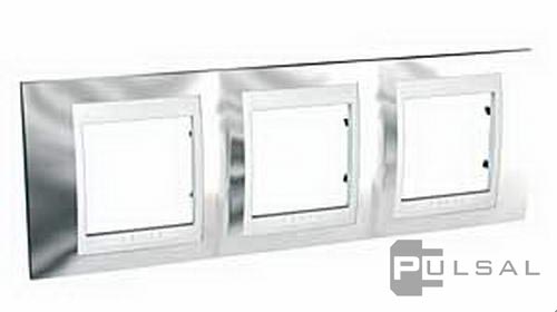 Рамка Unica Хамелеон, 3 поста, цвет - хром, бежевый, металл