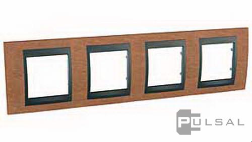 Рамка Unica Top, 4 поста, цвет - вишня, алюминий, дерево