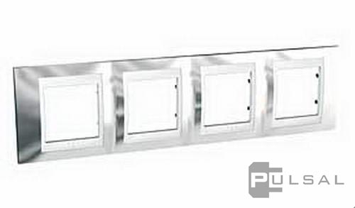 Рамка Unica Хамелеон, 4 поста, цвет - хром, бежевый, металл