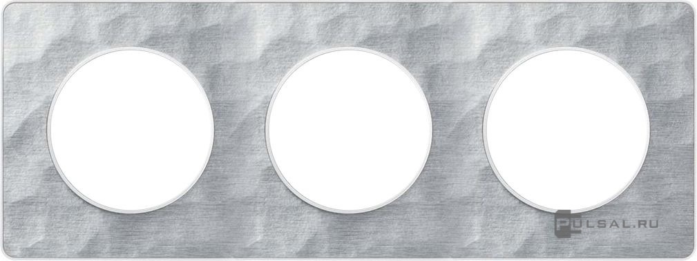 Рамка Odace, 3 поста, цвет - алюминий martele, белый, металл