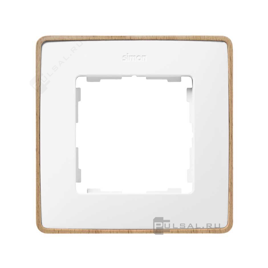 Рамка Simon 82 Detail, 1 пост, цвет - белый глянец, дерево, дерево, пластмасса