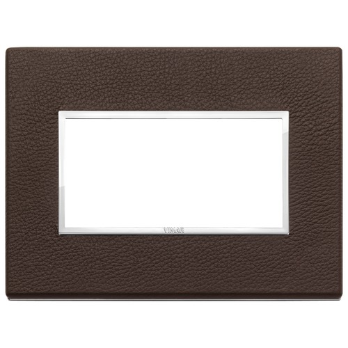Рамка Eikon EVO, 4 модуля, цвет - кожа табак, хром, кожа