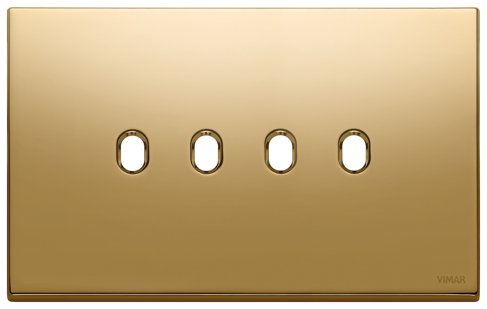 Рамка-накладка для тумблерного выключателя, на 4 механизма Eikon EXE Vintage, 4 модуля, цвет - золото, металл