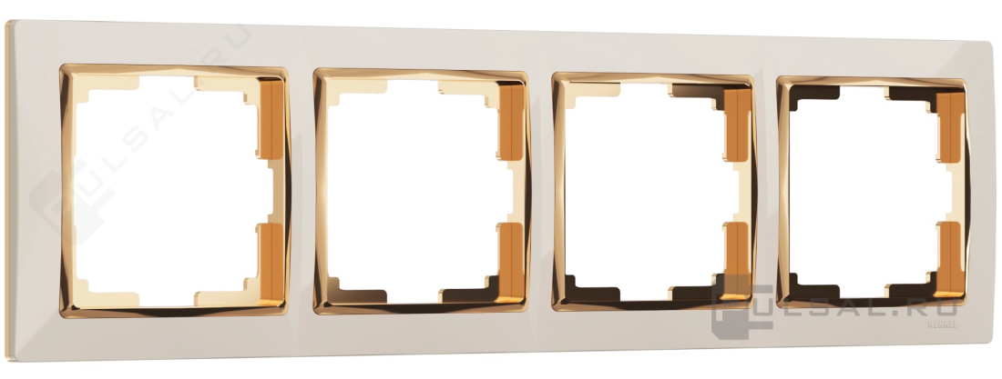 Рамкa Snabb, 4 поста, цвет - слоновая кость, золото, пластмасса