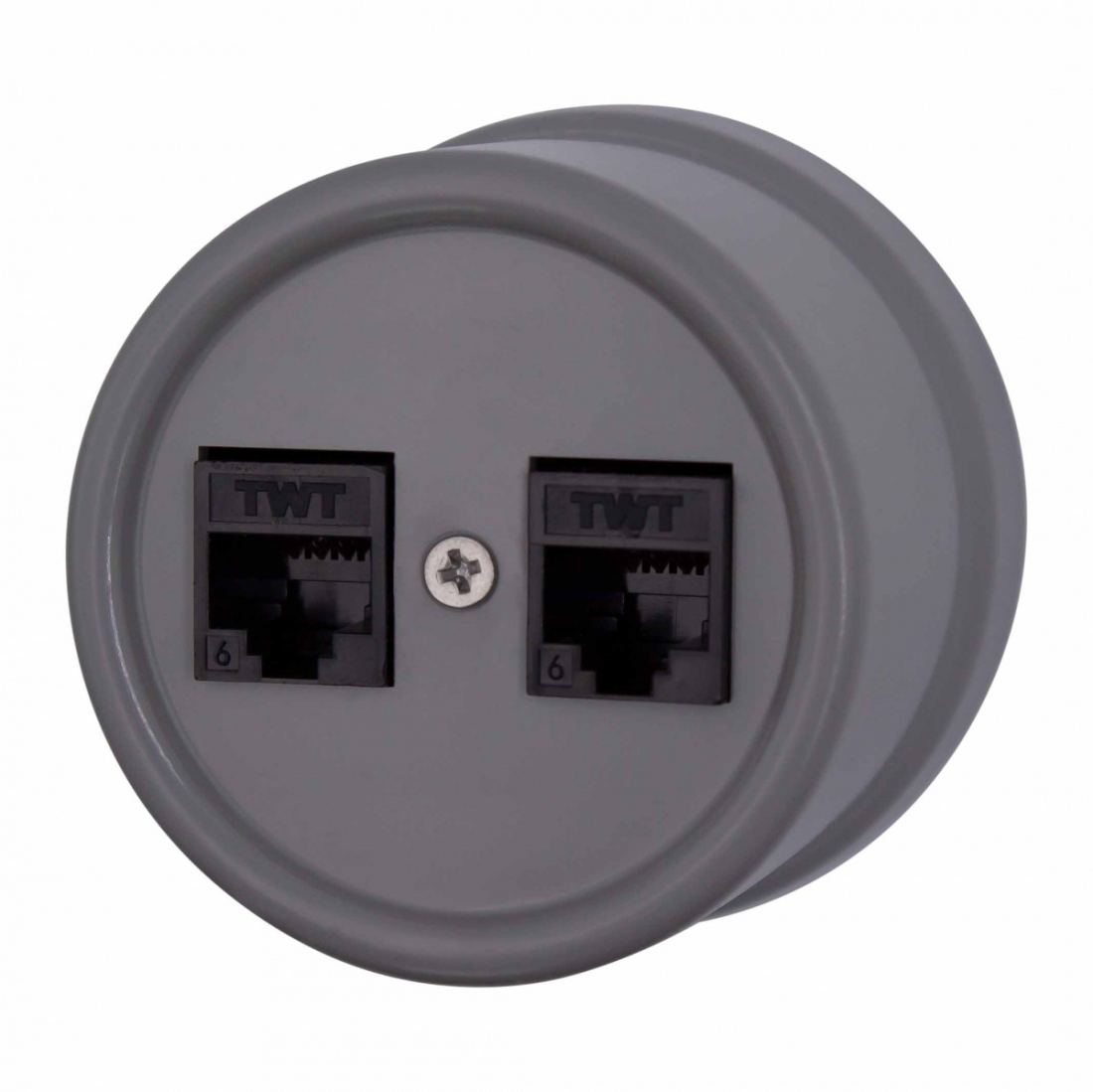 Розетка оконечная Лизетта, телевизионная (TV), двойная, цвет - титан
