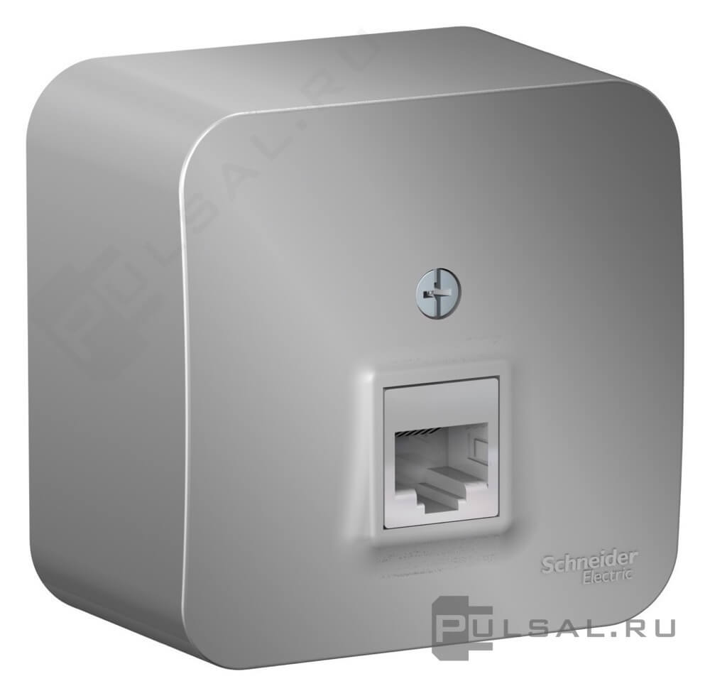 Розетка телефонная RJ11 Blanca, одинарная, цвет - алюминий