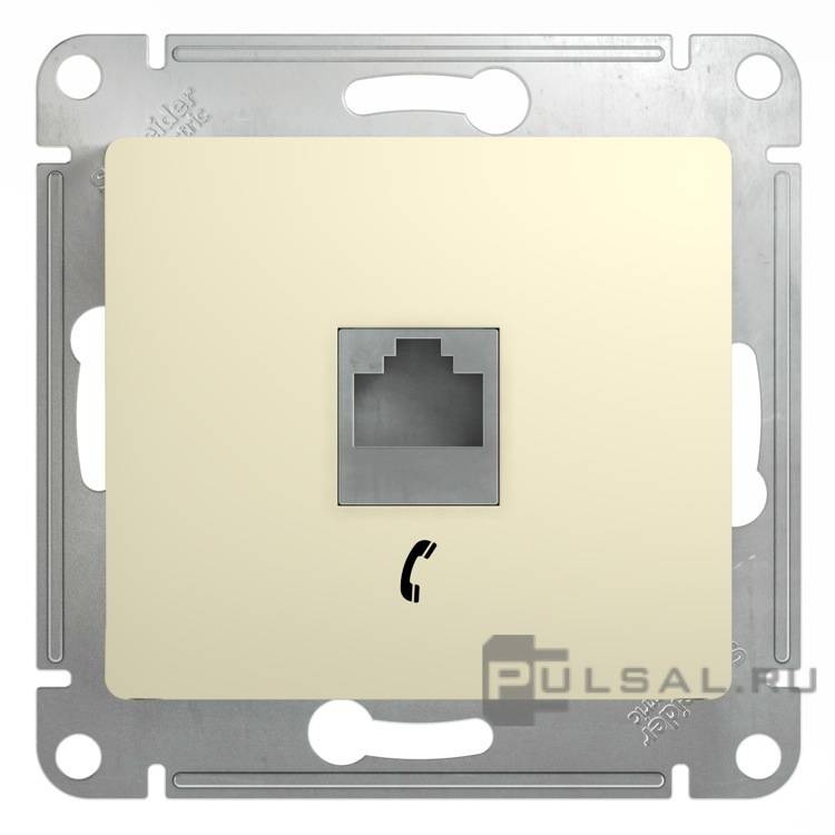 Glossa, со шторками, с заземлением, одинарная, безвинтовые клеммы, цвет - бежевый